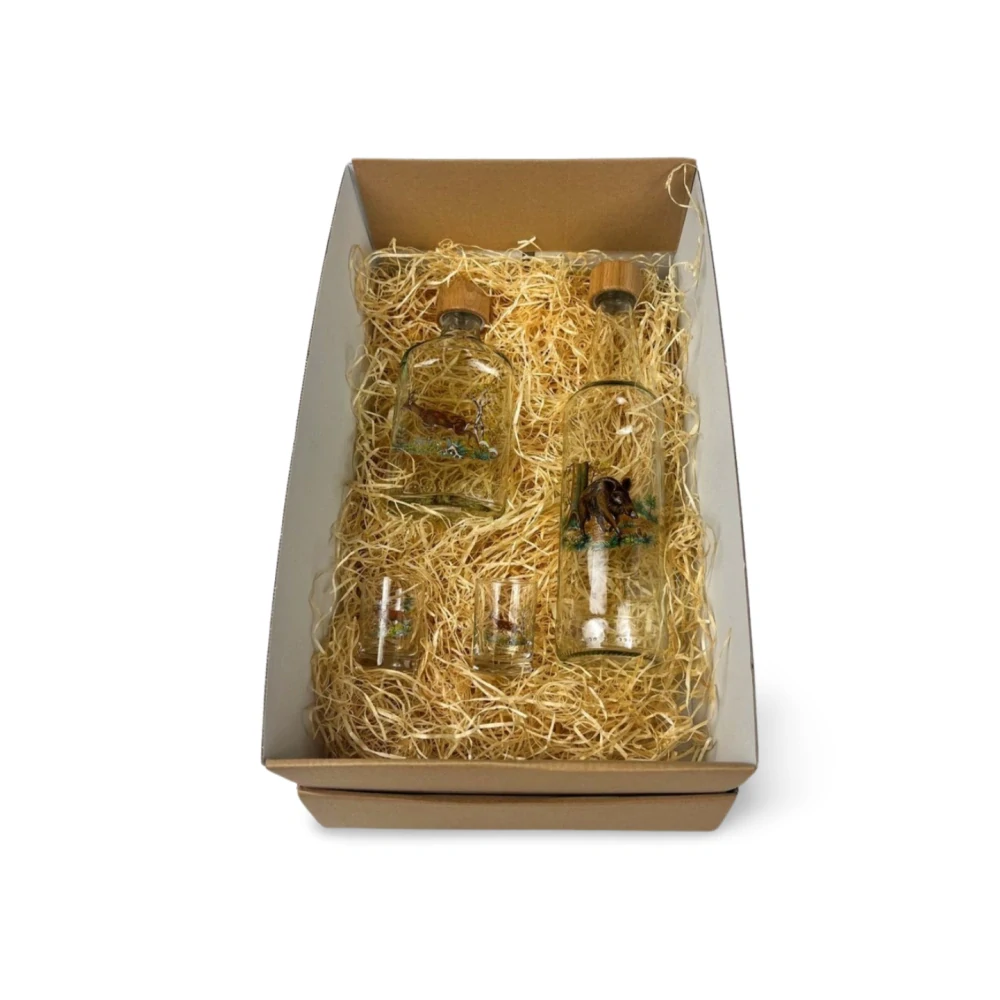 Tato dárková sada je ideálním dárkem pro myslivce a milovníky přírody! Obsahuje dvě skleničky na panáka, placatku a láhev s loveckým motivem, což z ní činí perfektní výbavu na dobrodružství v přírodě. Vše je elegantně zabaleno v dárkové krabici s dekorační výplní, která chrání obsah a zároveň vytváří luxusní vzhled. Tato sada potěší každého, kdo má rád lov a outdoorové aktivity, a skvěle se hodí na oslavy, výlety nebo do lovecké chaty.